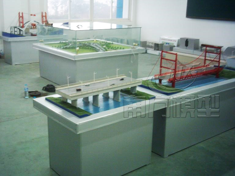 典型橋梁模型:拱橋(趙州橋)、梁橋(每邊2跨簡(jiǎn)支梁,中間3跨連續梁)、剛架橋、懸索橋(金門(mén)大橋)、斜拉橋(楊浦大橋)、鋼管拱橋 施工機械模型:土壓平衡盾構機模型、矩形頂管機模型、反鏟挖掘機(單斗)模型、平地機模型、路面材料攤鋪機模型、旋挖斗鉆機模型、正循環(huán)鉆機模型、反循環(huán)鉆機模型、沖擊式鉆機模型、后張法預應力施工用千斤頂、油泵及壓漿泵模型、先張法預應力施工用張拉臺座模型
